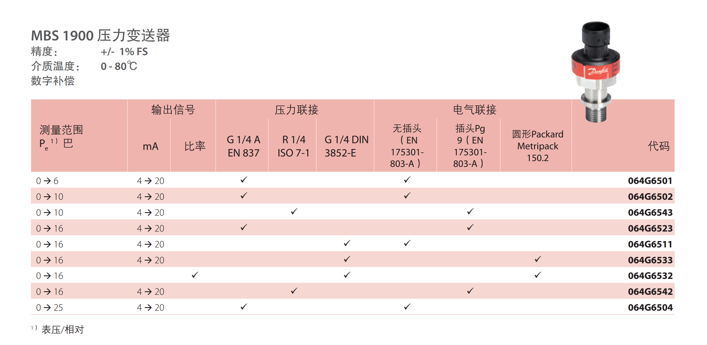MBS 1900,OEM 壓力變送器適合空壓機與水泵應用